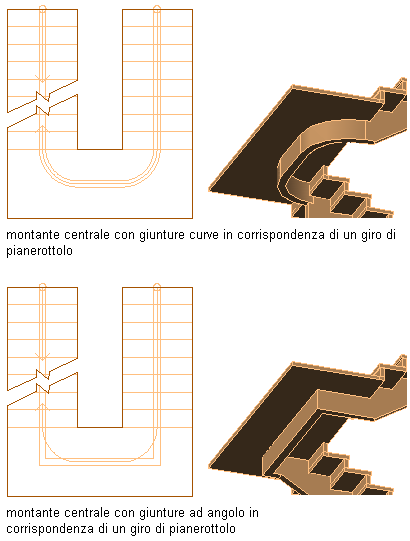 Giunture ad angolo e curve per montanti centrali in corrispondenza di giri di pianerottolo