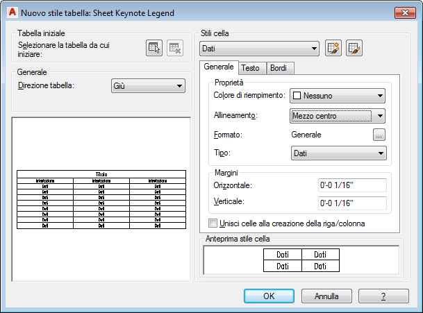 Per le legende delle note chiave vengono utilizzati stili di tabella AutoCAD. Per modificare gli stili di tabella disponibili, attenersi alla procedura indicata di seguito.