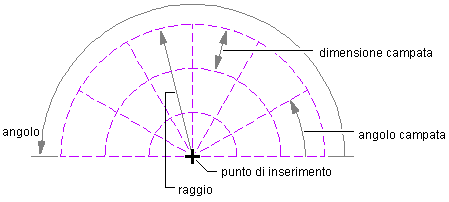 | Creare il layout della griglia con un angolo di campata fisso lungo la direzione Y | Espandere Asse Y, selezionare Ripeti in Tipo di layout, quindi immettere un valore per angolo Campata. |