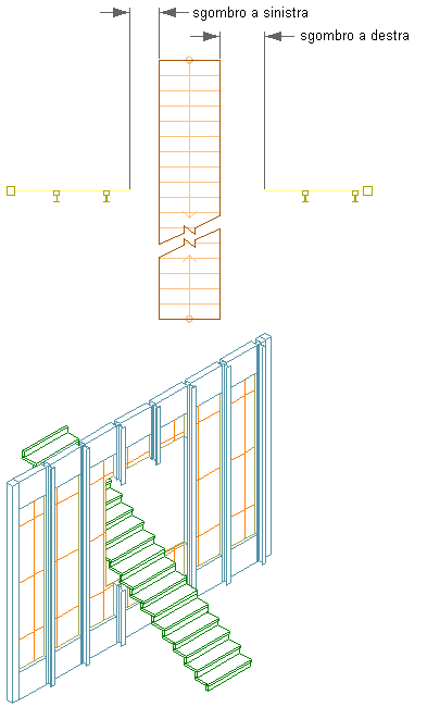 | Specificare lo sgombro laterale per una condizione di interferenza relativa a scale diritte e a più pianerottoli | Immettere un valore per Sgombro sinistro e Sgombro destro. |
