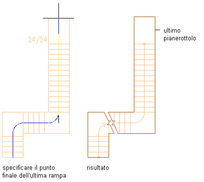 | Inserire un pianerottolo al termine della rampa di scale | Selezionare Pianerottolo per Termina con. ![]() |
