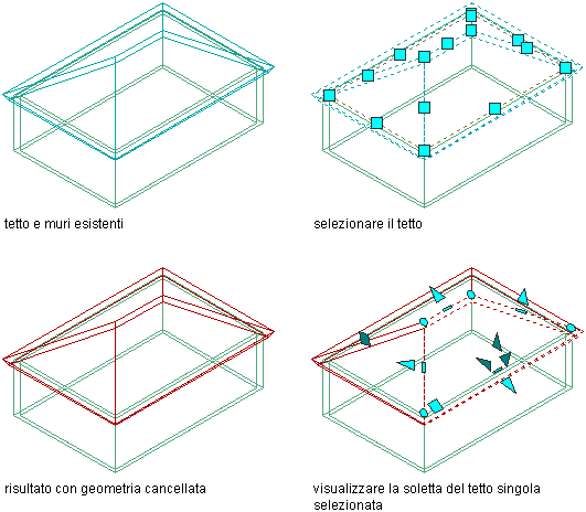 Suggerimento: Quando si converte un tetto in solette del tetto, le solette presentano la stessa sporgenza del tetto.