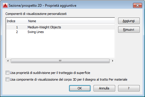 - Per specificare le proprietà di visualizzazione per ogni componente aggiunto, fare clic sulla scheda Layer/Colore/Tipo di linea, selezionare il componente e modificare i valori nella colonna.