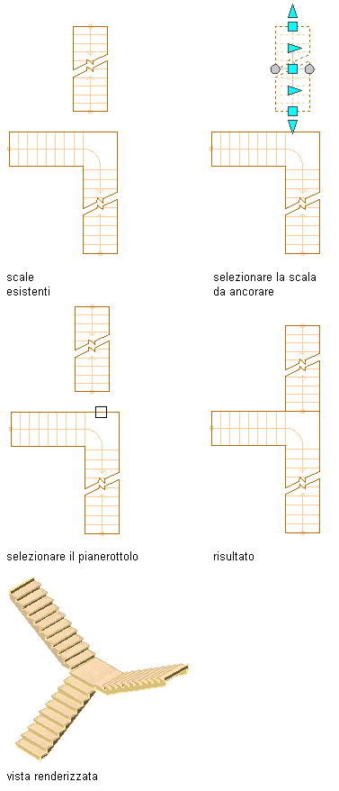 Per ancorare una scala o altri oggetti AEC ad un pianerottolo esistente, attenersi alla procedura indicata di seguito.