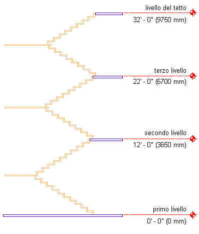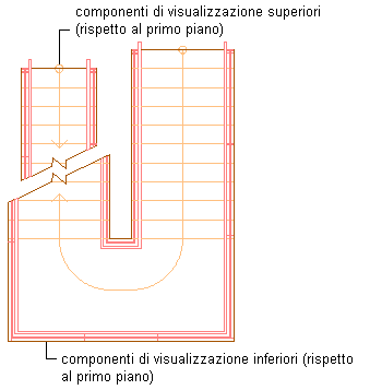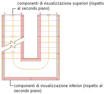 Sono disponibili componenti per il supporto della rappresentazione di componenti di scala al di sopra del prospetto del piano di taglio, pertanto gli elementi inferiori vengono utilizzati solo per visualizzare i componenti di scala al di sotto del livello corrente.