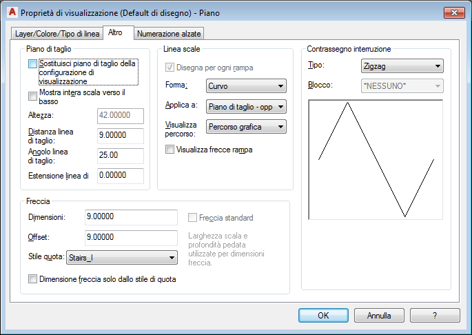 Per le scale create in Autodesk Architectural Desktop 2004 e versioni precedenti, l'opzione Sostituisci piano di taglio della configurazione di visualizzazione è attiva per default. Nella versione corrente, questa opzione è invece deselezionata per default e la visualizzazione dei componenti di scala viene gestita automaticamente dalle configurazioni di visualizzazione specifiche per ogni livello.