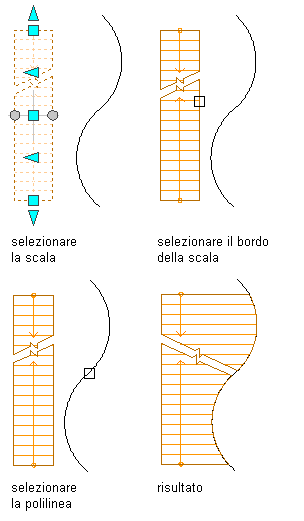 Proiezioni dei bordi di scala su segmenti di polilinea curvi