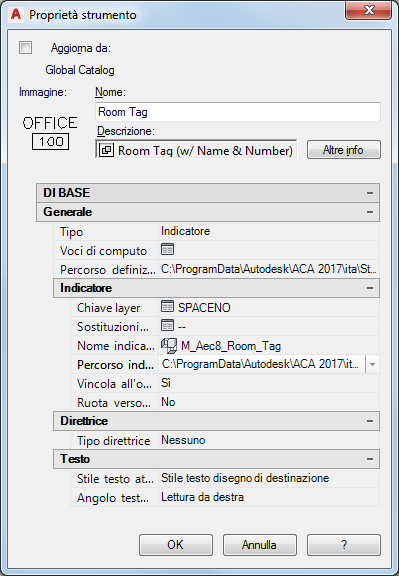 Nota: Dopo avere selezionato Aggiorna da, tutte le proprietà dello strumento nel foglio di lavoro diventano di sola lettura. Se si intende modificarle, questa operazione deve essere effettuata nella Libreria.