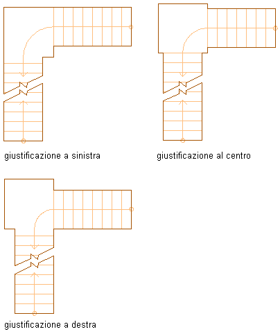 Inserimento di larghezza aggiuntiva in un pianerottolo a metà in base alla giustificazione della scala