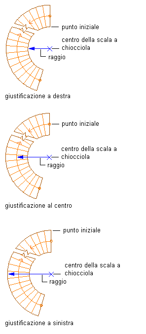 Il raggio viene misurato dal punto centrale della scala a chiocciola al punto di giustificazione selezionato.