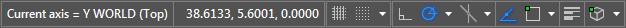 Nota: Quando è attivo RTUCS, i sei orientamenti ortogonali vengono visualizzati ogni volta che l'UCS viene allineato con uno di essi. Ad esempio, se si ruota l'asse X di 90 gradi rispetto alla posizione WCS utilizzando RTUCS, sulla riga di stato viene visualizzato quanto segue: Current axis = X < 90 Front. Queste informazioni vengono visualizzate anche con l'opzione Cycle.