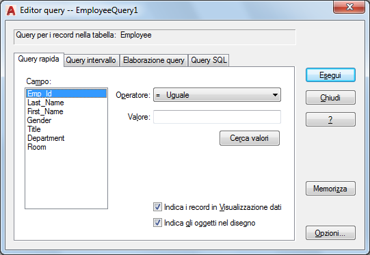Apre la finestra di dialogo Opzioni di visualizzazione dati e di query.