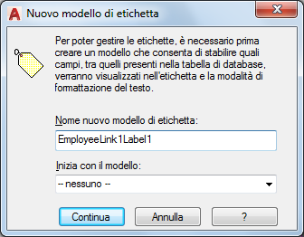 Le etichette sono oggetti di testo multilinea che consentono di visualizzare in un disegno i dati provenienti dai campi selezionati memorizzati in tabelle di database esterni. Le etichette possono essere associate o meno ad oggetti.