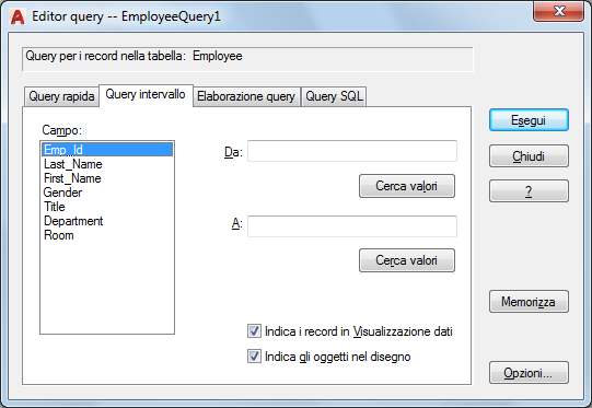 Apre la finestra di dialogo Opzioni di visualizzazione dati e di query.