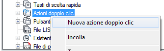 1. Nella scheda Personalizza, nel riquadro Personalizzazioni in <nome file>, fare clic con il pulsante destro del mouse sul nodo Azioni doppio clic. Fare clic su Nuova azione doppio clic.