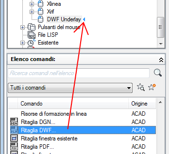 5. Se si desidera sostituire il comando corrente assegnato all'azione doppio clic, trascinare un comando dal riquadro Elenco comandi e rilasciarlo sull'azione doppio clic nel riquadro Personalizzazioni in <nome file>.