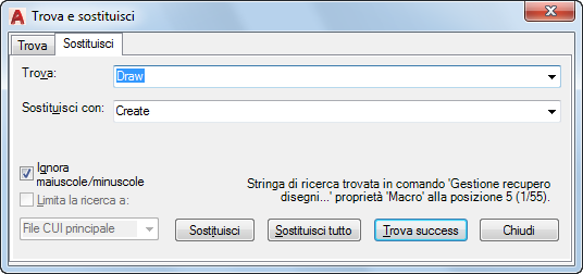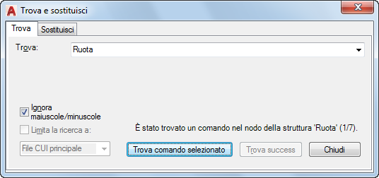 Viene visualizzato un messaggio con i dettagli della posizione del comando, la posizione esatta del comando nel riquadro Personalizzazioni in o nel riquadro Proprietà e il numero di istanze del comando.