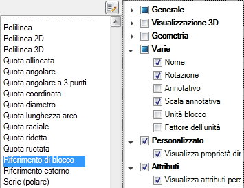 Controllo della visualizzazione di attributi e proprietà personalizzate per i riferimenti di blocco