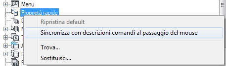 Sincronizzazione delle proprietà rapide con le descrizioni comandi al passaggio del mouse