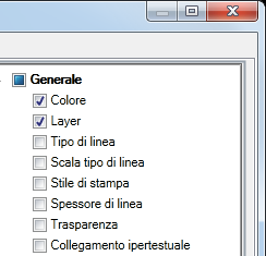 Se selezionata, una proprietà viene visualizzata nella descrizione comandi al passaggio del mouse quando il cursore passa su un tipo di oggetto selezionato nella finestra di disegno. Eliminare il segno di spunta accanto ad una proprietà del tipo di oggetto selezionato per rimuoverla.