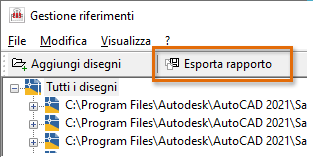 Creare un rapporto su tutti i file di riferimento nei file di disegno specificati