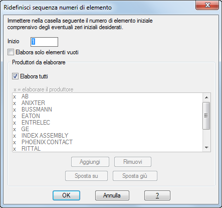 I componenti del quadro vengono elaborati per primi, seguiti dai componenti dello schema. Ai componenti con la stessa assegnazione di catalogo viene assegnato il medesimo numero di elemento.