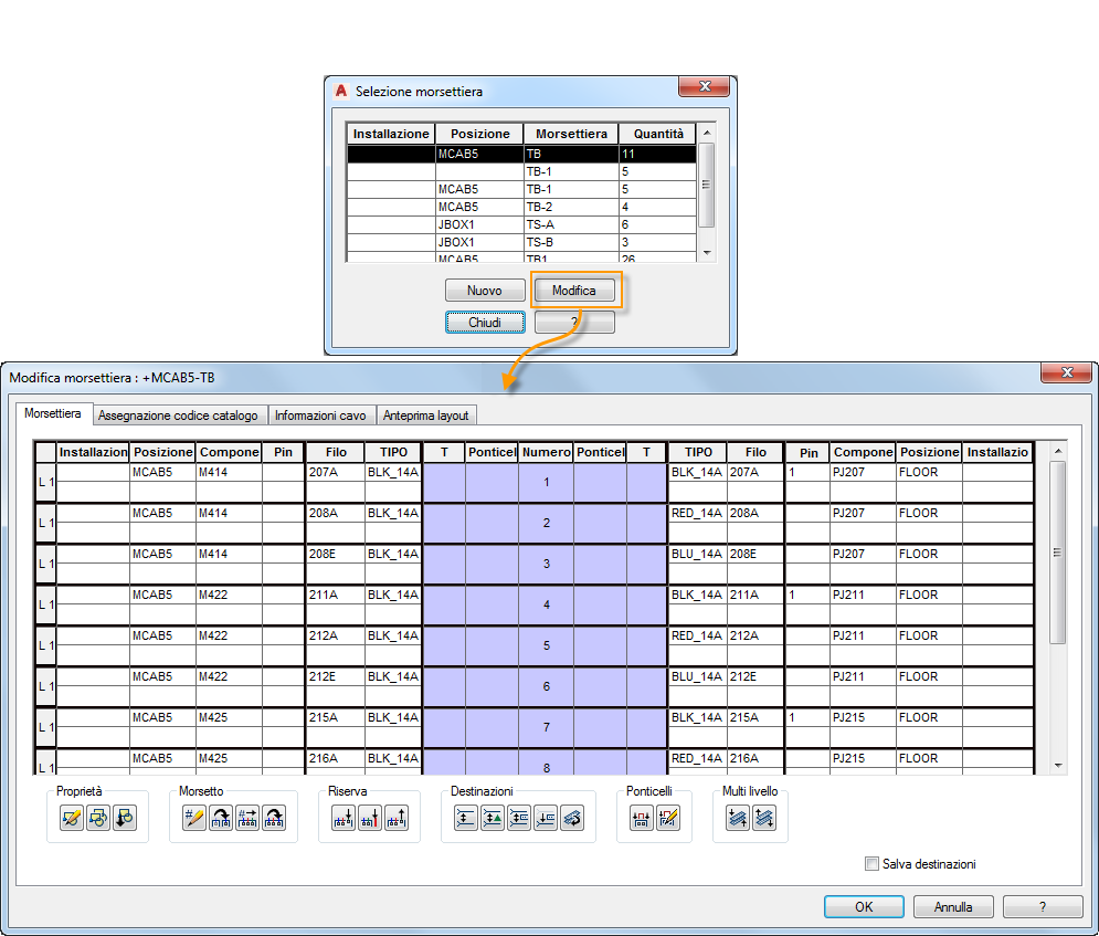 La funzione Modifica morsettiera consente di gestire intere morsettiere invece di un morsetto alla volta. Trova