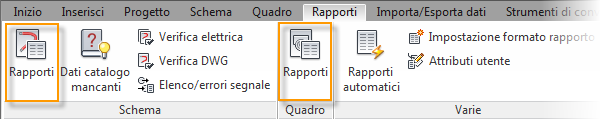 In AutoCAD Electrical è possibile scegliere fra una serie di rapporti. Alcuni rapporti contengono informazioni estratte solo dai disegni dello schema, mentre altri contengono informazioni estratte solo dai disegni di layout del quadro. È anche possibile creare un rapporto completo della distinta dei materiali, contenente tutti gli elementi del quadro e gli elementi dello schema non visualizzati nei layout del quadro.