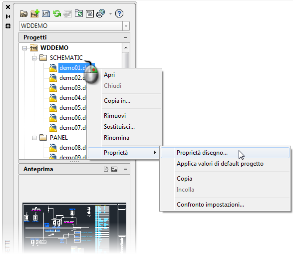 Le proprietà del disegno controllano molte delle funzioni di AutoCAD Electrical. Essi includono: