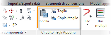Per copiare i componenti e i fili da un disegno all'altro, utilizzare i comandi Circuito negli Appunti.