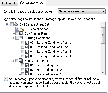 Visualizza i sottogruppi di fogli che verranno aggiornati automaticamente.