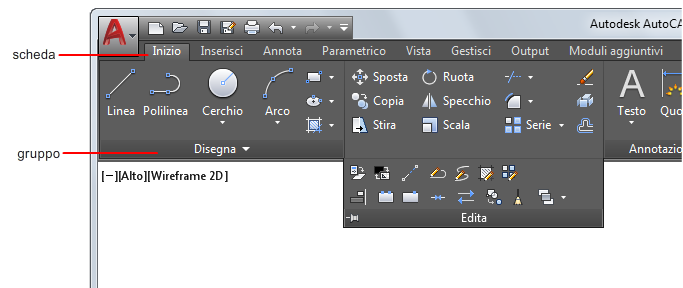 La barra multifunzione è composta da una serie di schede organizzate in gruppi che contengono molti degli strumenti e dei controlli disponibili nelle barre degli strumenti.
