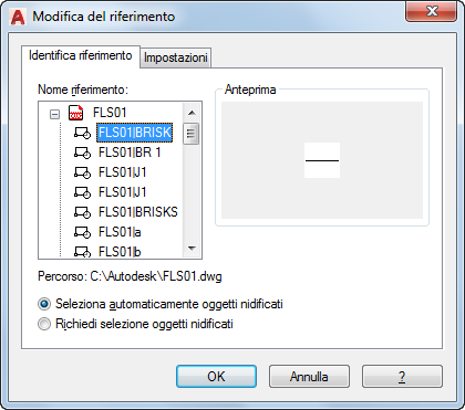 Per specificare un riferimento, selezionare un oggetto del riferimento. Se si seleziona un oggetto che appartiene ad uno o più riferimenti nidificati, tali riferimenti vengono visualizzati nella finestra di dialogo.