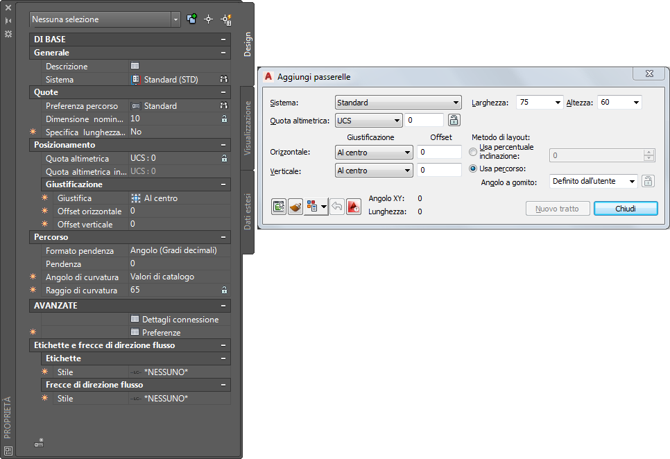 2. Per i passaggi successivi, utilizzare il riquadro proprietà per le impostazioni dei tubi protettivi o la finestra di dialogo Aggiungi passerelle per le impostazioni delle passerelle, come indicato di seguito.