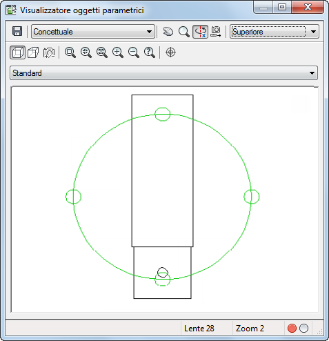 - Nel Visualizzatore oggetti parametrici selezionare un punto del cerchio e trascinare il cursore lungo la circonferenza per visualizzare dinamicamente il modello 3D da vari punti di vista.