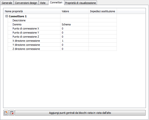 - Specificare i valori per le coordinate X, Y e Z dei punti di connessione oppure fare clic su Aggiungi punti centrali da blocchi vista in vista dall'alto per creare un connettore centrato.