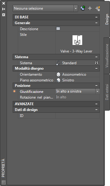 Nota: Se per lo stile selezionato non è impostata alcuna vista assonometrica, il campo Orientamento è di sola lettura ed è impostato su Ortogonale. In tal caso, selezionare un altro stile.