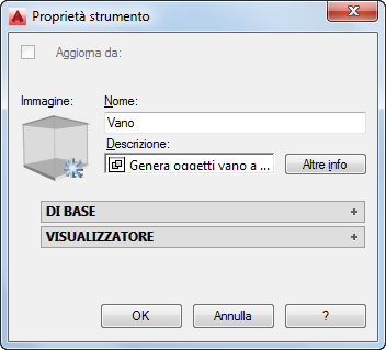 Gli strumenti in genere rappresentano oggetti o voci di contenuto AEC, tuttavia è possibile creare anche uno strumento per comandi.