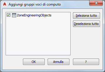 4. Nella finestra di dialogo Aggiungi gruppi voci di computo, selezionare Oggetti zona tecnica e fare clic su OK.