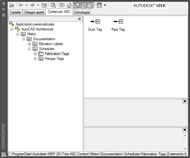 - Nella tavolozza di DesignCenter fare clic sulla scheda Contenuto AEC.