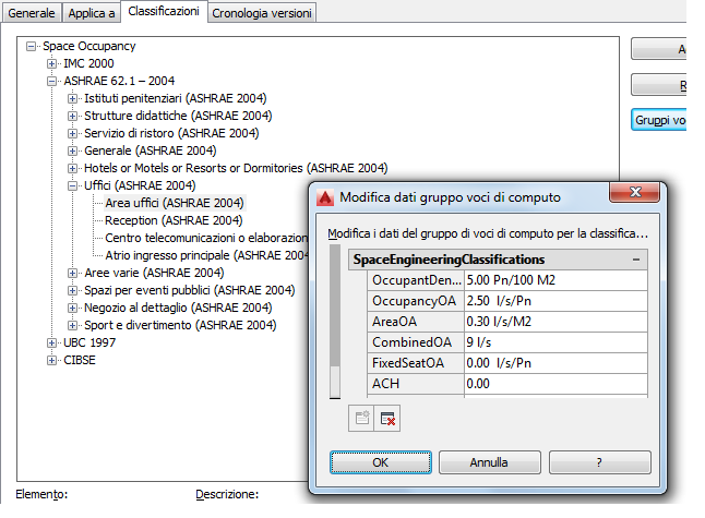 Nella finestra di dialogo Modifica dati gruppo voci di computo sono visualizzati i valori per la classificazione.
