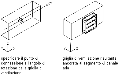 Quando viene utilizzato il metodo di ancoraggio per inserire una parte, la parte viene ancorata al segmento o all'oggetto selezionato. Il tal modo le parti funzionano come un'unica parte. Ad esempio, se per una griglia di ventilazione si imposta l'uso del metodo di ancoraggio, quando se ne aggiunge una nel disegno, questa viene ancorata ad un segmento. Se il segmento viene spostato, la griglia si sposta con esso.