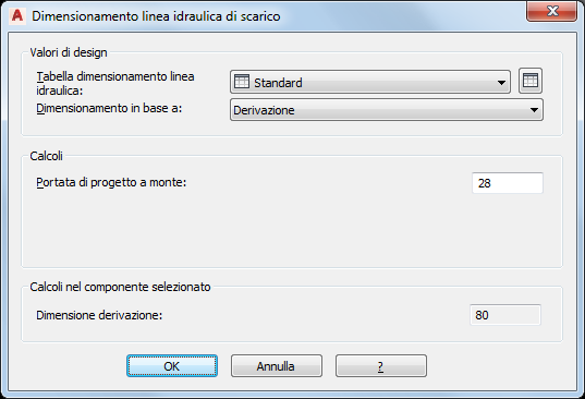 - In Valori di design, verificare che per Dimensionamento in base a sia stato selezionato Derivazione.