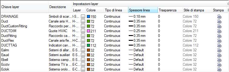 A ogni standard layer corrisponde uno stile di chiavi layer. Uno stile di chiavi layer comprende un gruppo di chiavi layer. Le chiavi layer assegnano gli oggetti a layer predefiniti, con nomi conformi allo standard layer. Quando si aggiunge un oggetto al disegno, il software lo disegna automaticamente nel layer assegnato dallo stile di chiavi layer corrente. Questo processo viene indicato come assegnazione mediante chiavi layer.