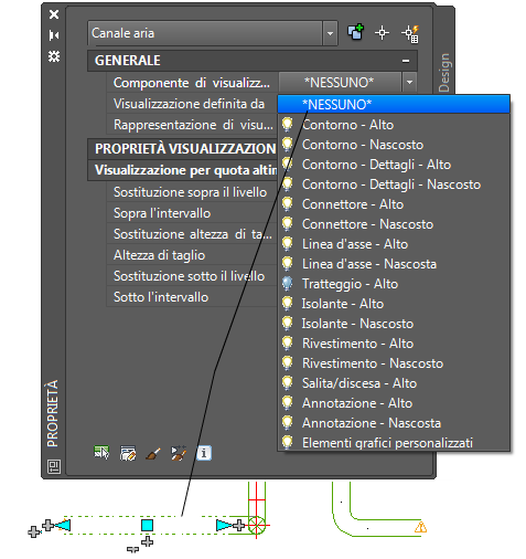 È inoltre possibile configurare componenti di visualizzazione basati su quota altimetrica per un oggetto specifico del disegno mediante la scheda Visualizzazione del riquadro proprietà.