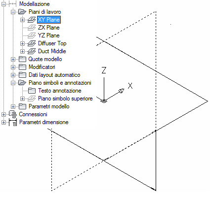 Vengono creati i piani di lavoro piano ZX, piano YZ e piano XY.