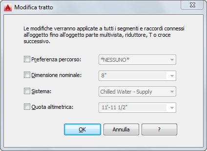 una o più proprietà (preferenza di percorso, dimensione nominale, sistema e quota altimetrica), quindi specificare il tipo di modifica nell'elenco corrispondente.