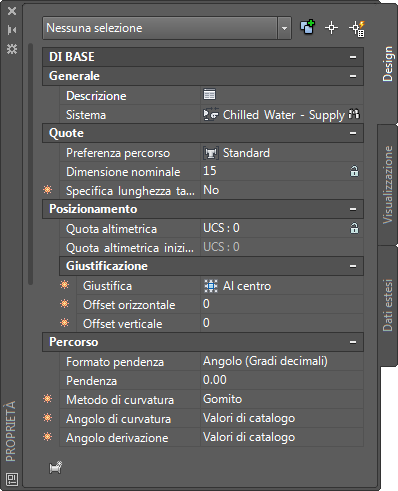 Per default, le proprietà di base sono visualizzate nel riquadro proprietà per i tubi.