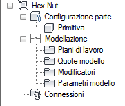 Viene visualizzato l'ambiente del Generatore di contenuti. Poiché le primitive sono prive di numerose caratteristiche di modellazione tipiche delle parti, ad esempio i dati di configurazione parte o i parametri di dimensione, è disponibile solo un sottogruppo di caratteristiche di modellazione.