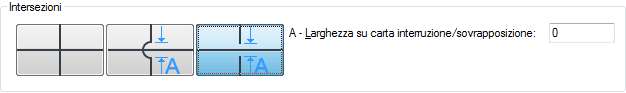 | Misto (uno su Sovrapposizione, l'altro su Interruzione) | Uguali | Lo stile di intersezione viene determinato in base alla seconda linea disegnata. Se lo stile è impostato su Sovrapposizione, la sovrapposizione viene visualizzata sulla seconda linea disegnata. Se lo stile è Interruzione, l'interruzione viene visualizzata sulla prima linea disegnata. |